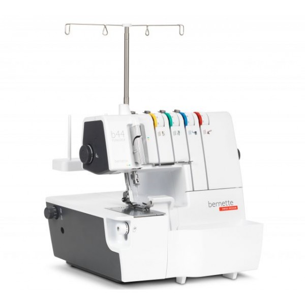 O enfiamento do crochet e agulha é facilitado pelos símbolos coloridos da bernette Funlock b44. A lâmina é acionada a partir de baixo, para que seja possível ajustar a largura do ponto com uma mão. A lâmpada LED oferece também uma boa visibilidade. E a b44 é rápida, costurando até 1300 pontos por minuto.