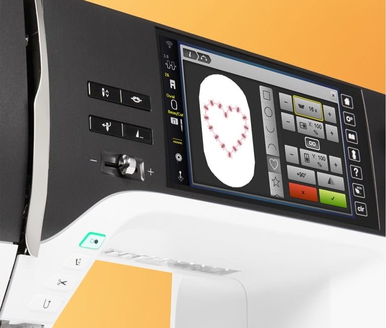 Multiplique os designs com um clique e organize-os numa formação pretendida. Quer seja em círculo, quadrado ou coração, com o designer de formas integrado surgem novos e únicos designs de bordado.