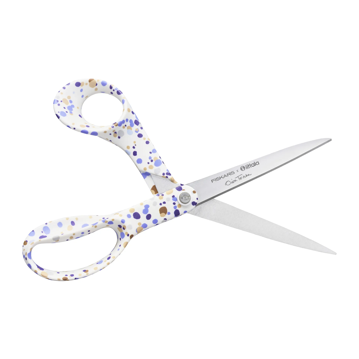 A tesoura universal Fiskars x Iittala de 21 cm da Fiskars é uma tesoura em aço inoxidável com um cabo em polipropeno com um padrão decorativo do extenso portfólio de padrões da Iittala.