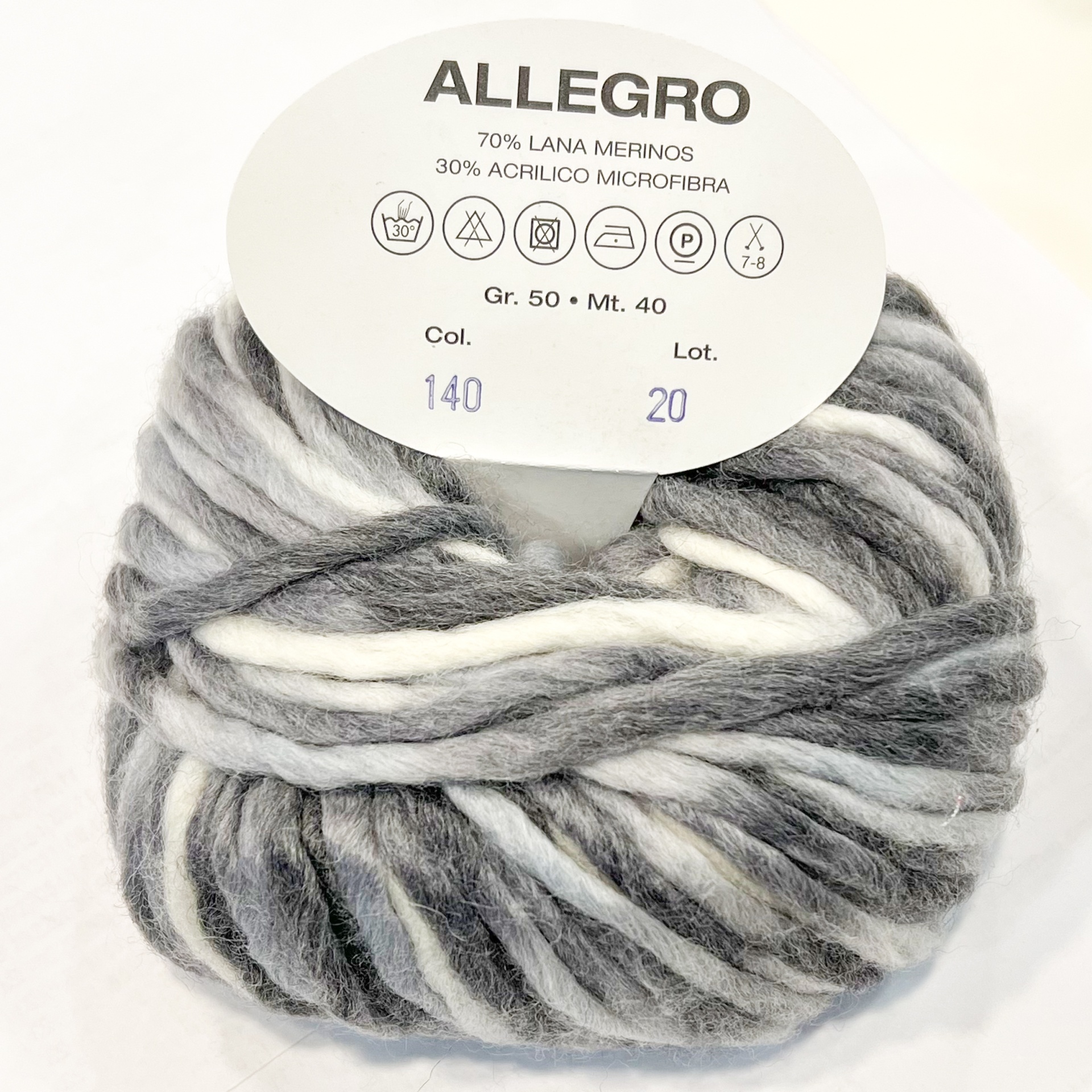Composição: 70% Lã de Merino, 30% Acrílico