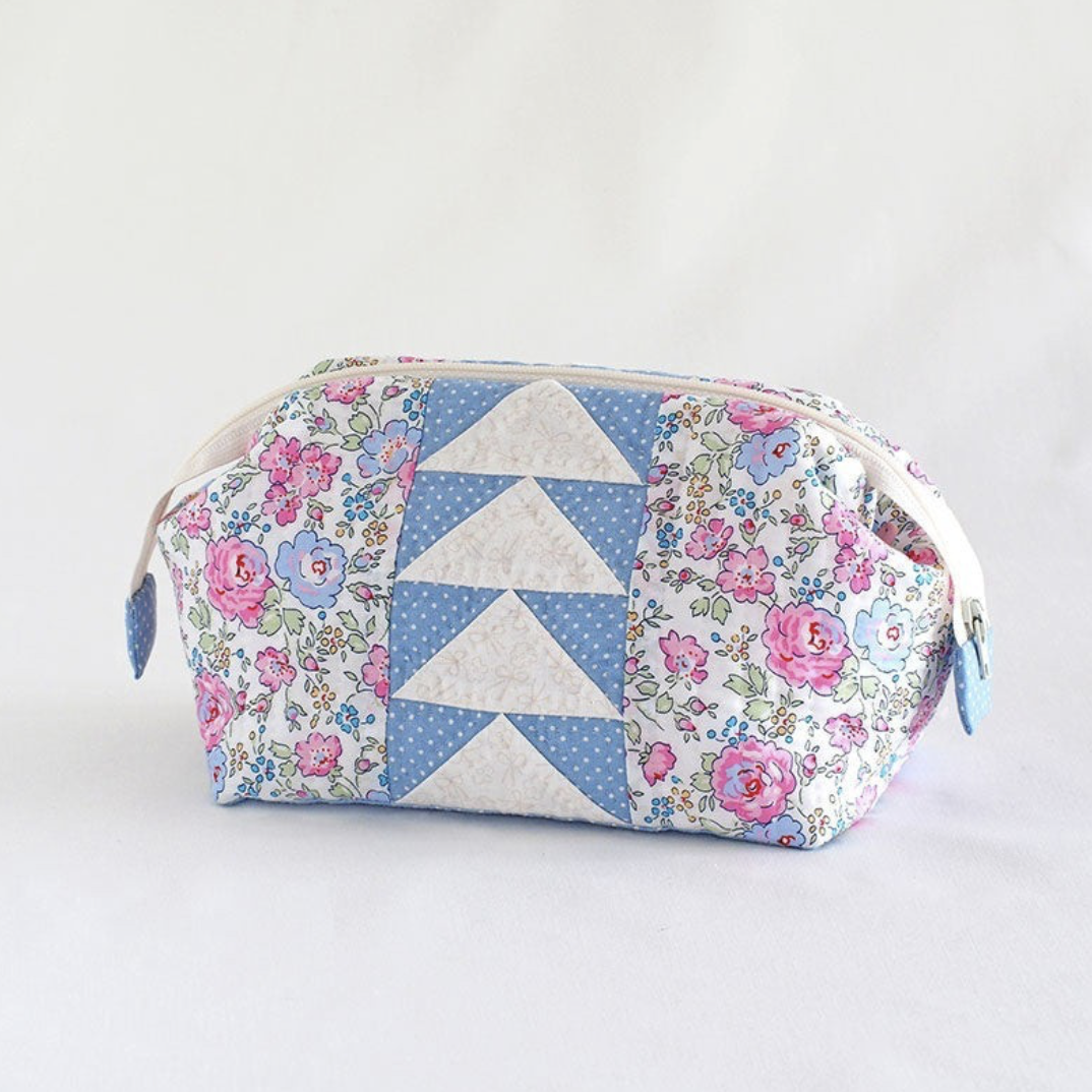Ideal para guardar maquilhagem, acessórios de costura, material de viagem ou pequenos objetos do dia a dia, este projeto é perfeito tanto para iniciantes como para costureiras experientes. O seu tamanho acabado é de aproximadamente 16,5 cm × 12,5 cm × 10 cm, o que o torna compacto, mas surpreendentemente espaçoso.