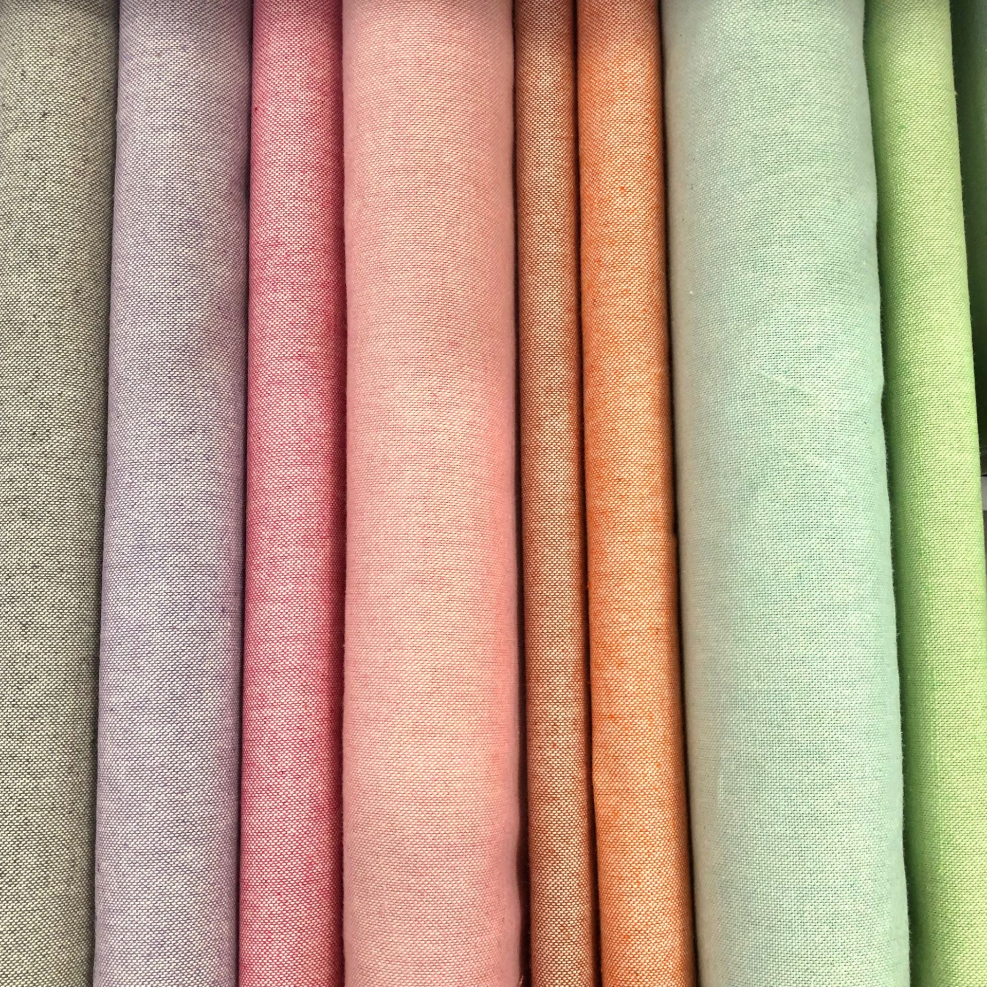 Tecido liso de tingimento no fio de algodão, disponível numa grande variedade de cores e padrões.