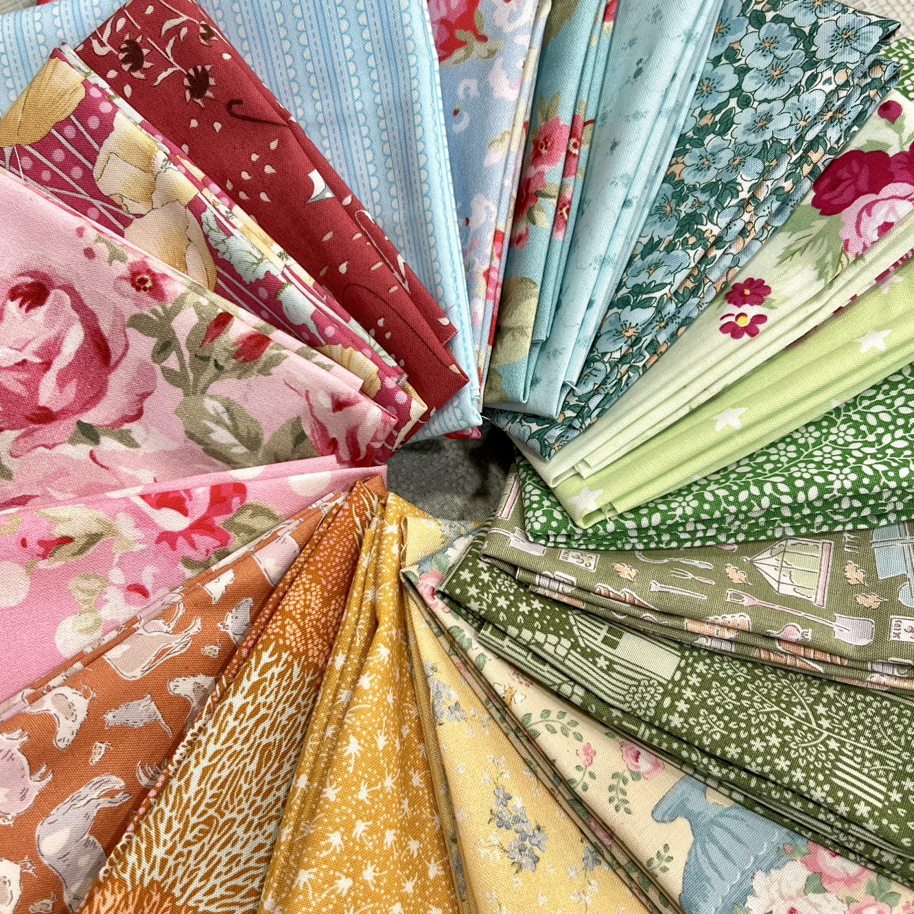 O kit inclui tecidos escolhidos pela Pontotextil de marcas como Tilda Fabrics, Liberty London, Tanya Whelan, etc., para fazer o topo da colcha.