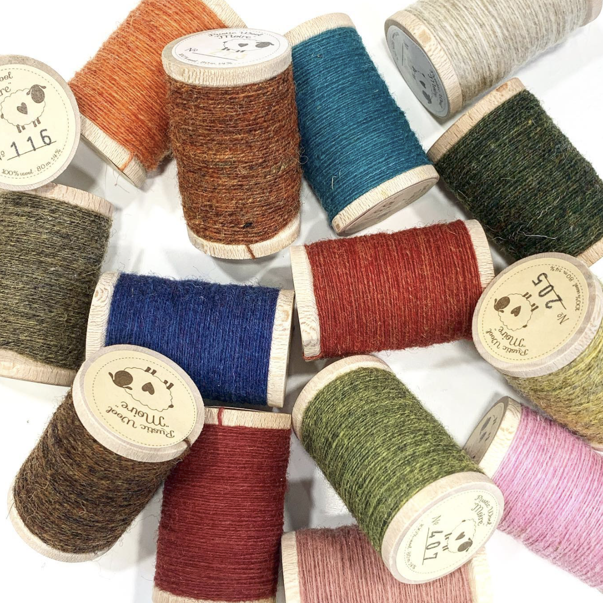 Fios rústicos 100% lã que são adequados para bordados e apliques.