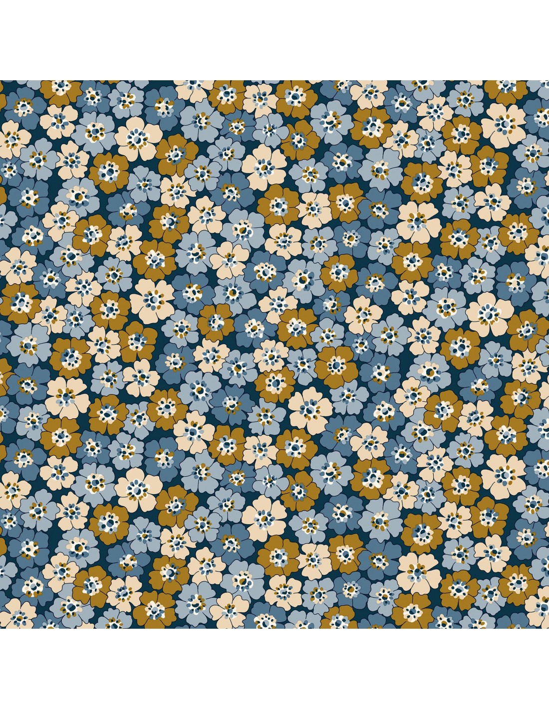 Tons índigo, tradicionalmente extraídos de woad e do género de plantas Indigofera, unem seis estampas numa coleção de cores harmoniosa. Denim Florals combina tons profundos de denim e índigo com pops complementares de ocre, rosa empoeirado e cremes macios.