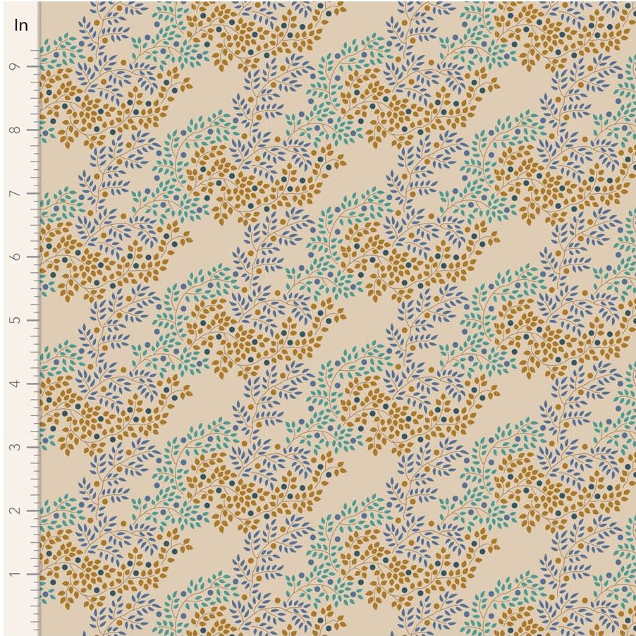 É uma colecção aconchegante, onde o amor pelo lar e pela comunidade têm sido minha principal inspiração. Desenhos de bairros, casas, jardins e encontros em cores de Outono são perfeitos para colchas e projectos caseiros. A colecção tem um mix de padrões unidos por um look polvilhado que os fará parecer entrelaçados em patchwork. Os tons de vermelho enferrujado - talvez combinados com o verde - também funcionarão bem para os seus projectos de Natal.