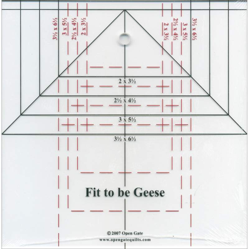 Corte e acerte blocos em estilo Flying Geese com facilidade e precisão usando a régua “Fit to be Geese” da Open Gate Quilts. Ideal para quem trabalha com patchwork e quilting e procura resultados uniformes, rápidos e com menos desperdício.