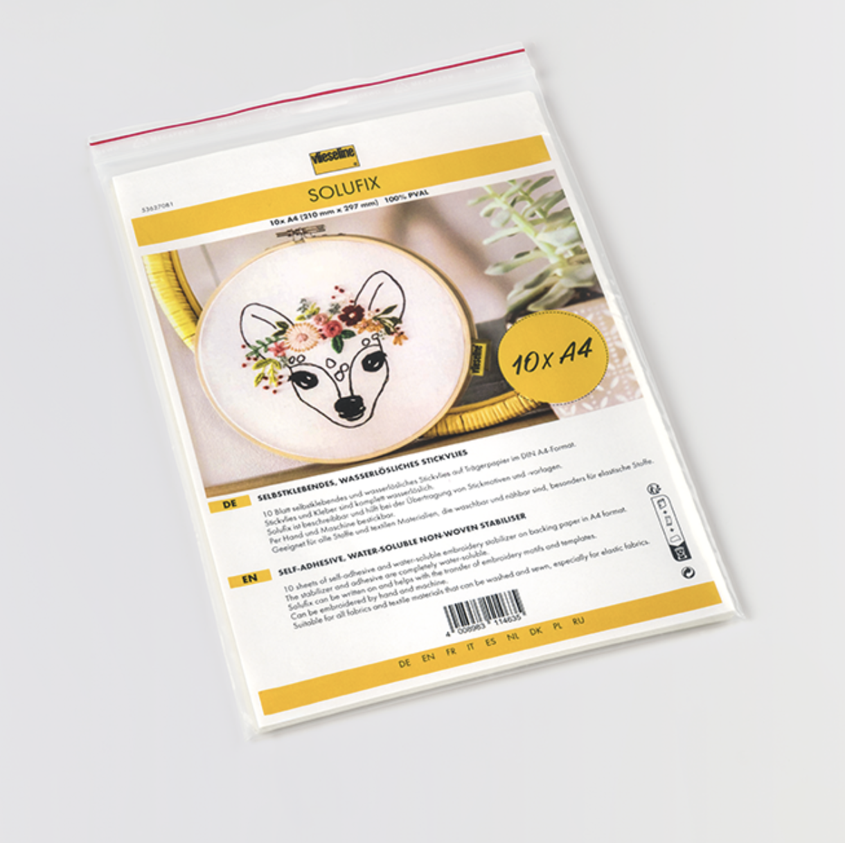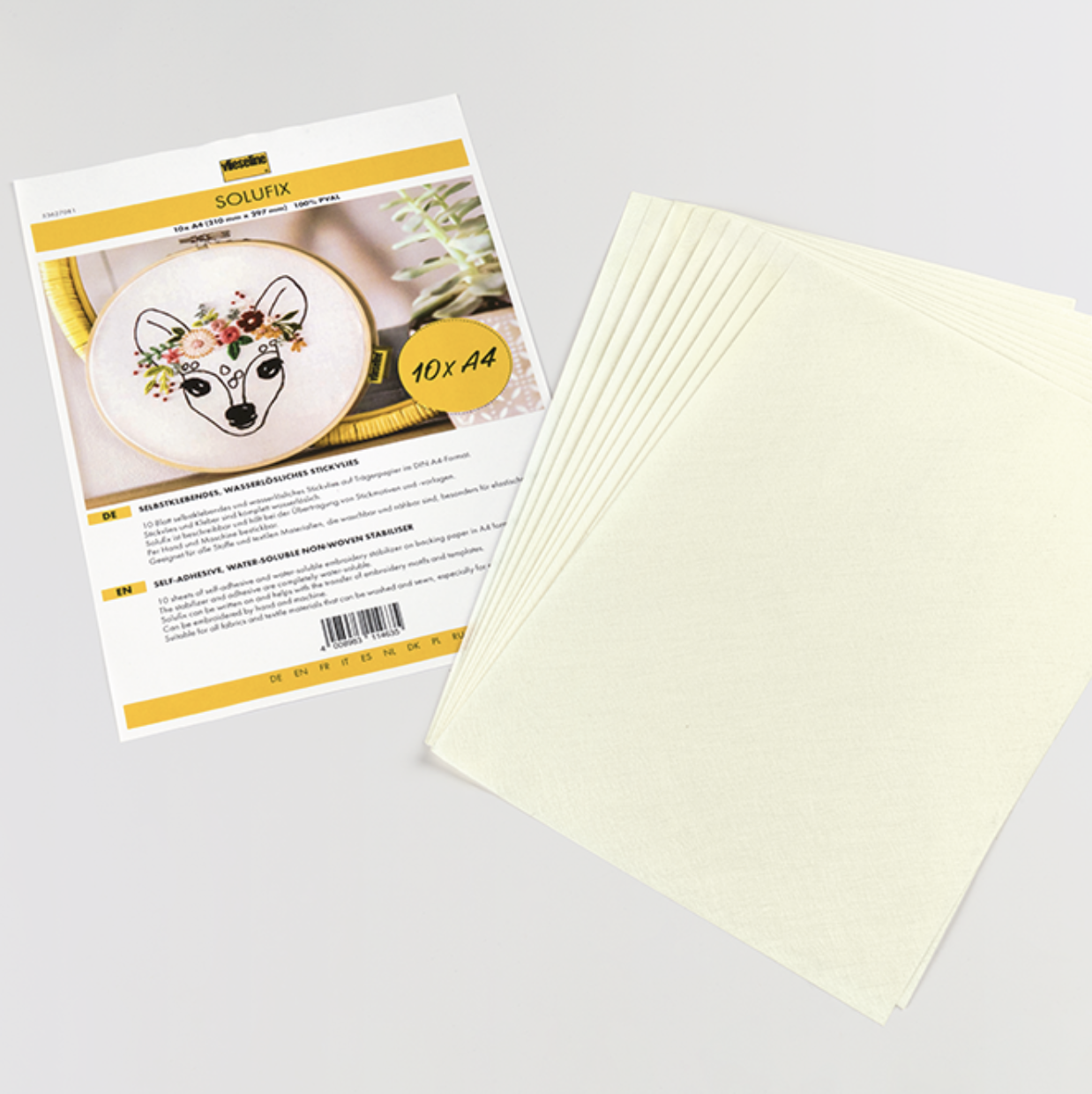 Solufix é um estabilizador de bordado solúvel em água e autoadesivo – sem necessidade de spray adesivo. Para todos os bordados e novas técnicas criativas!